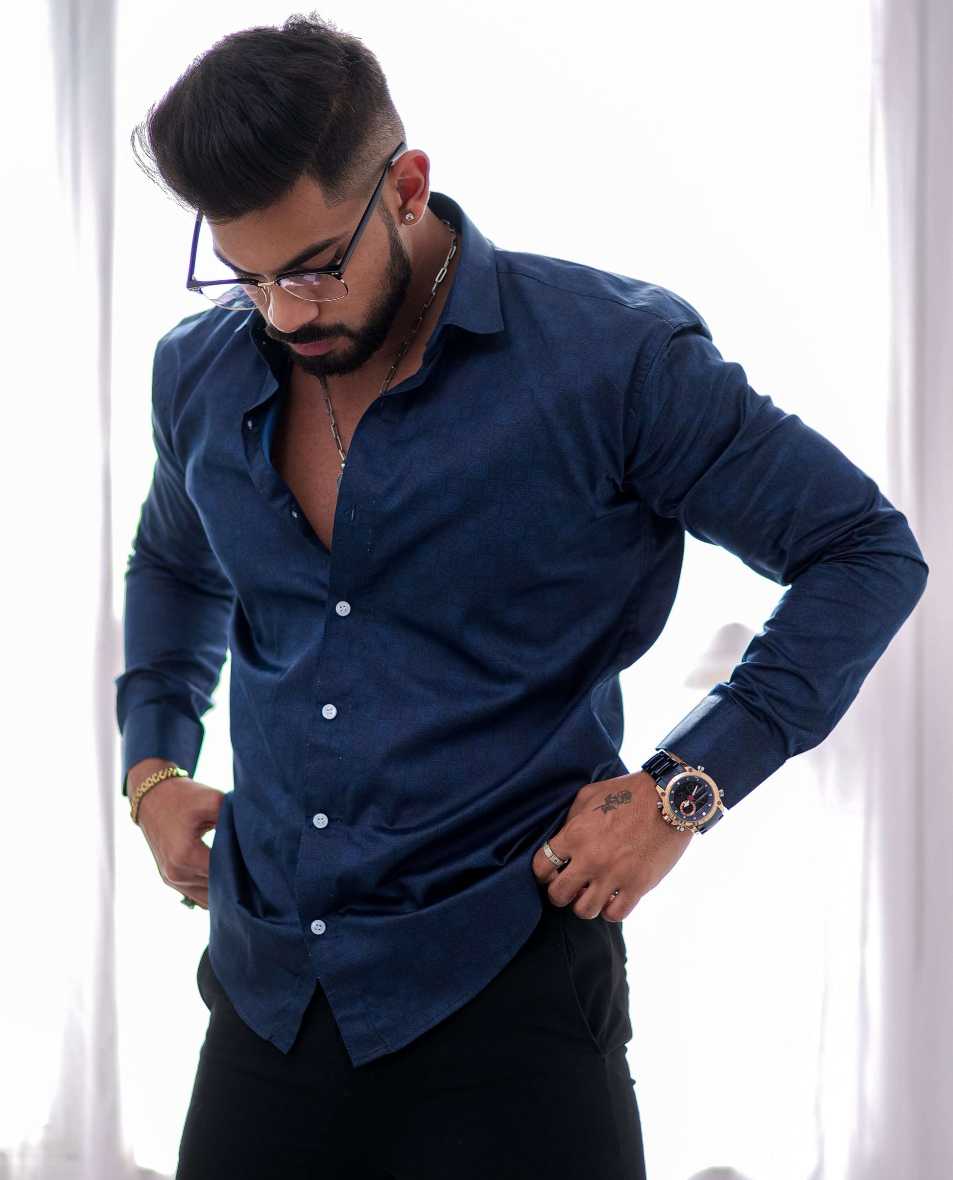 Blue Satin Print Premium Shirt