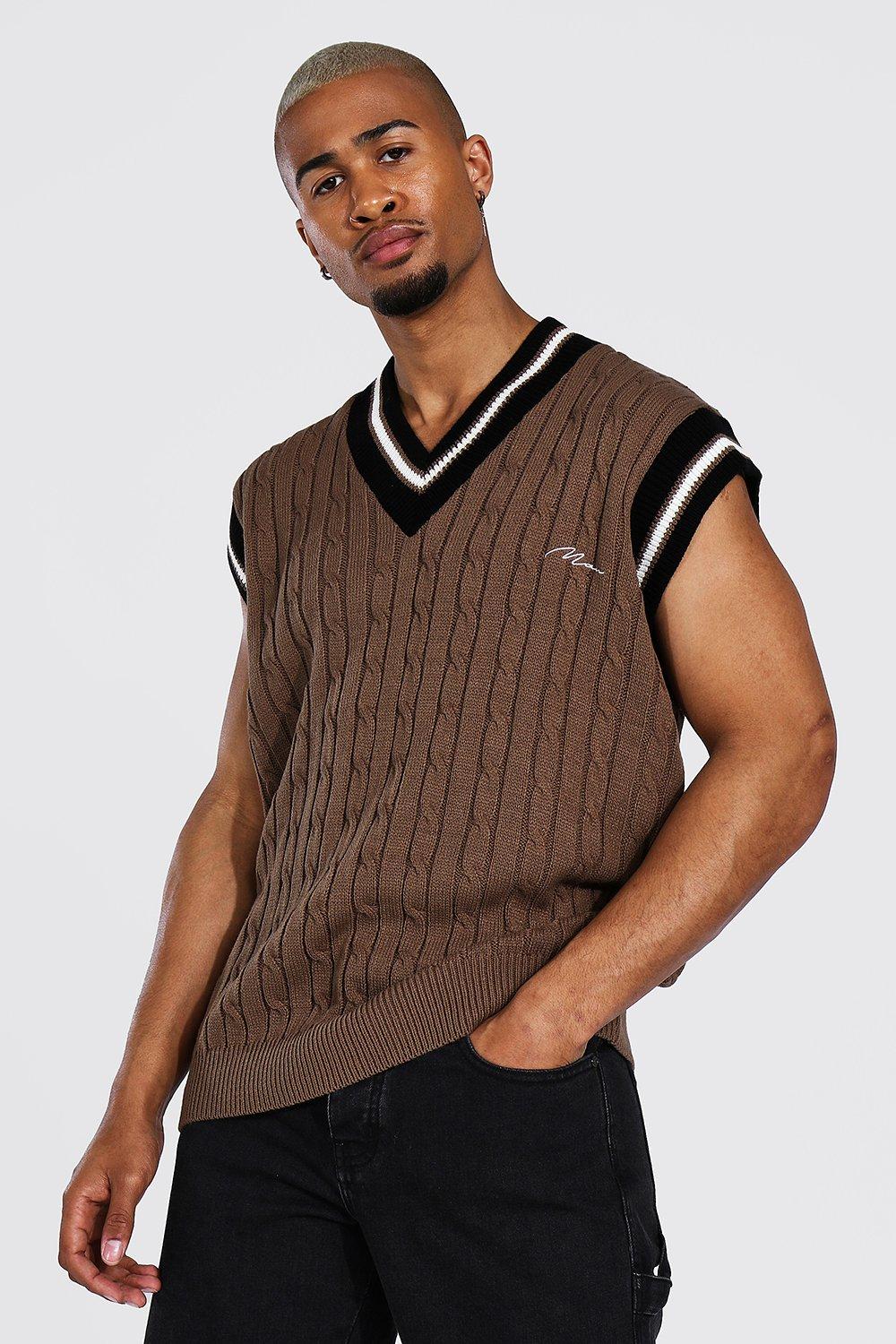 Man Cable Knit Oversized Vest With Stripes | Summer essential |