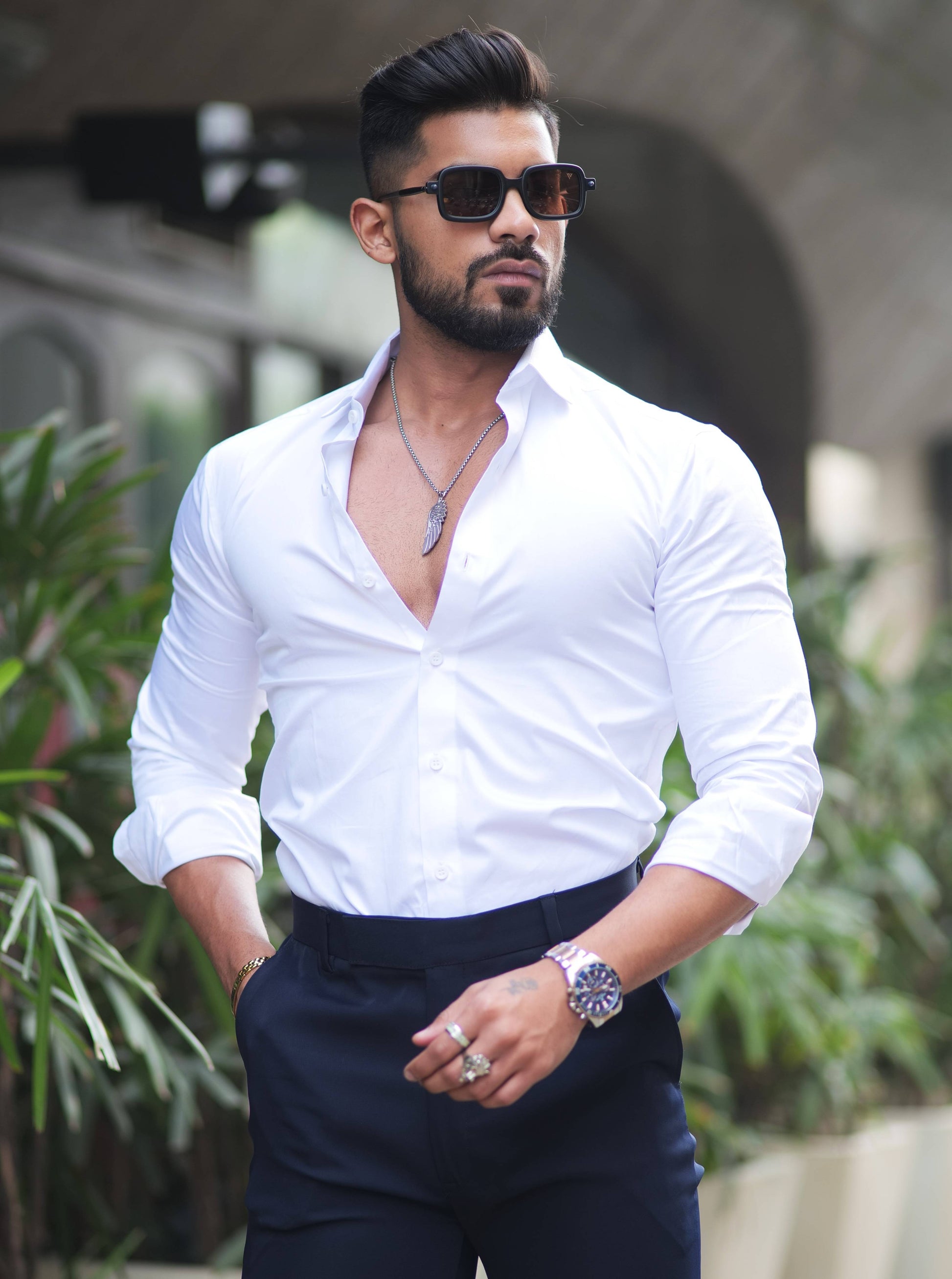 Formy White Smoke Luxury Formal Satin Cotton Shirt For Men's