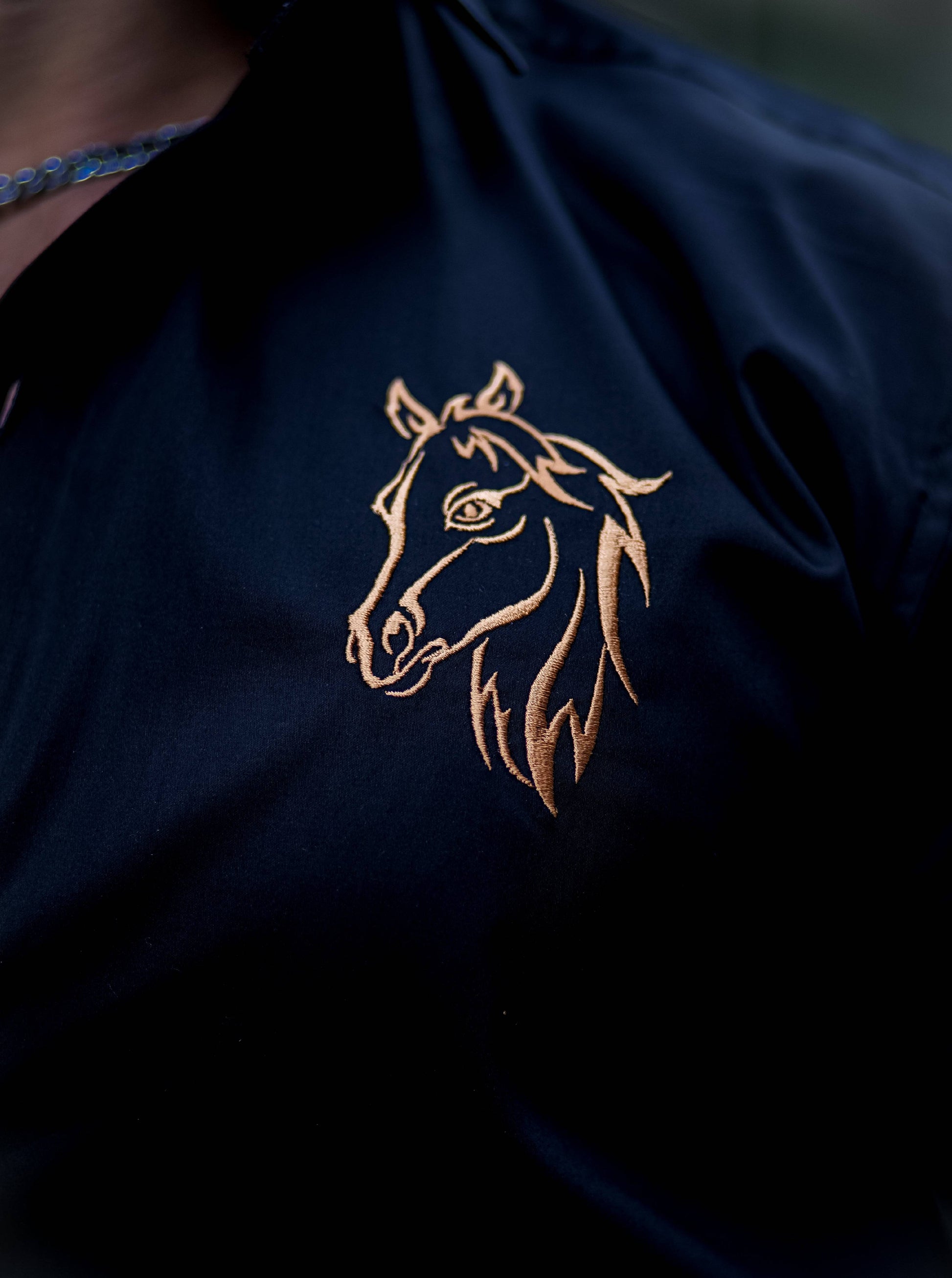 Horse Embroidered Black Luxury Cotton Shirt For Men