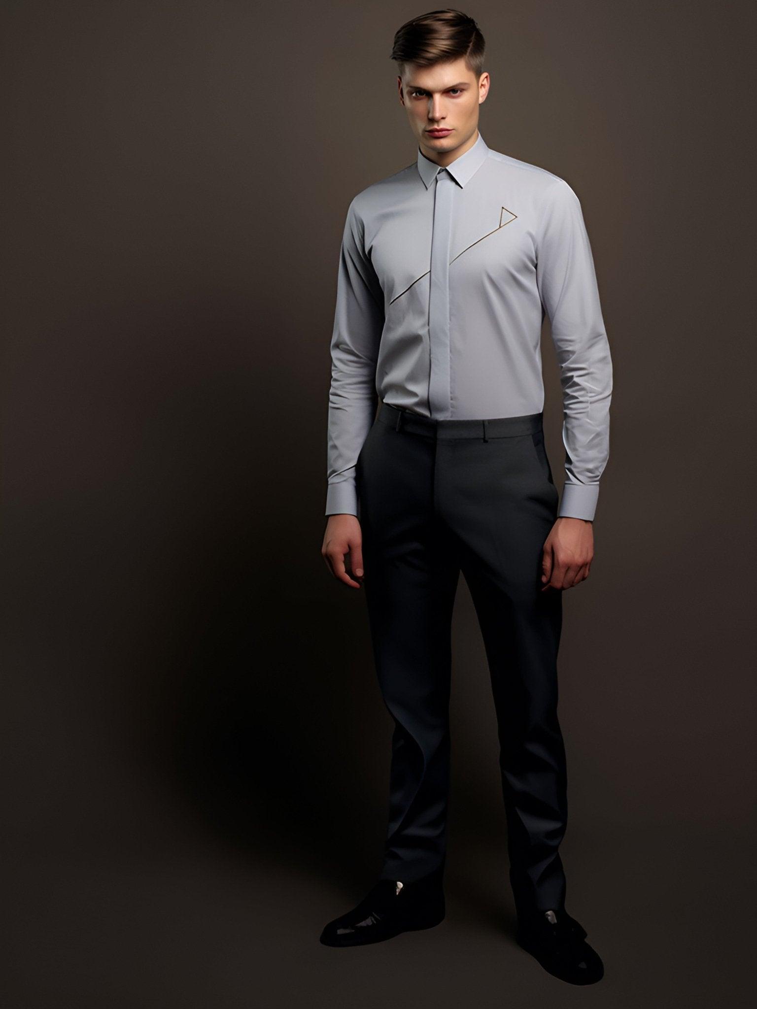 Highlight: Embroidered Semi Formal Grey Shirt