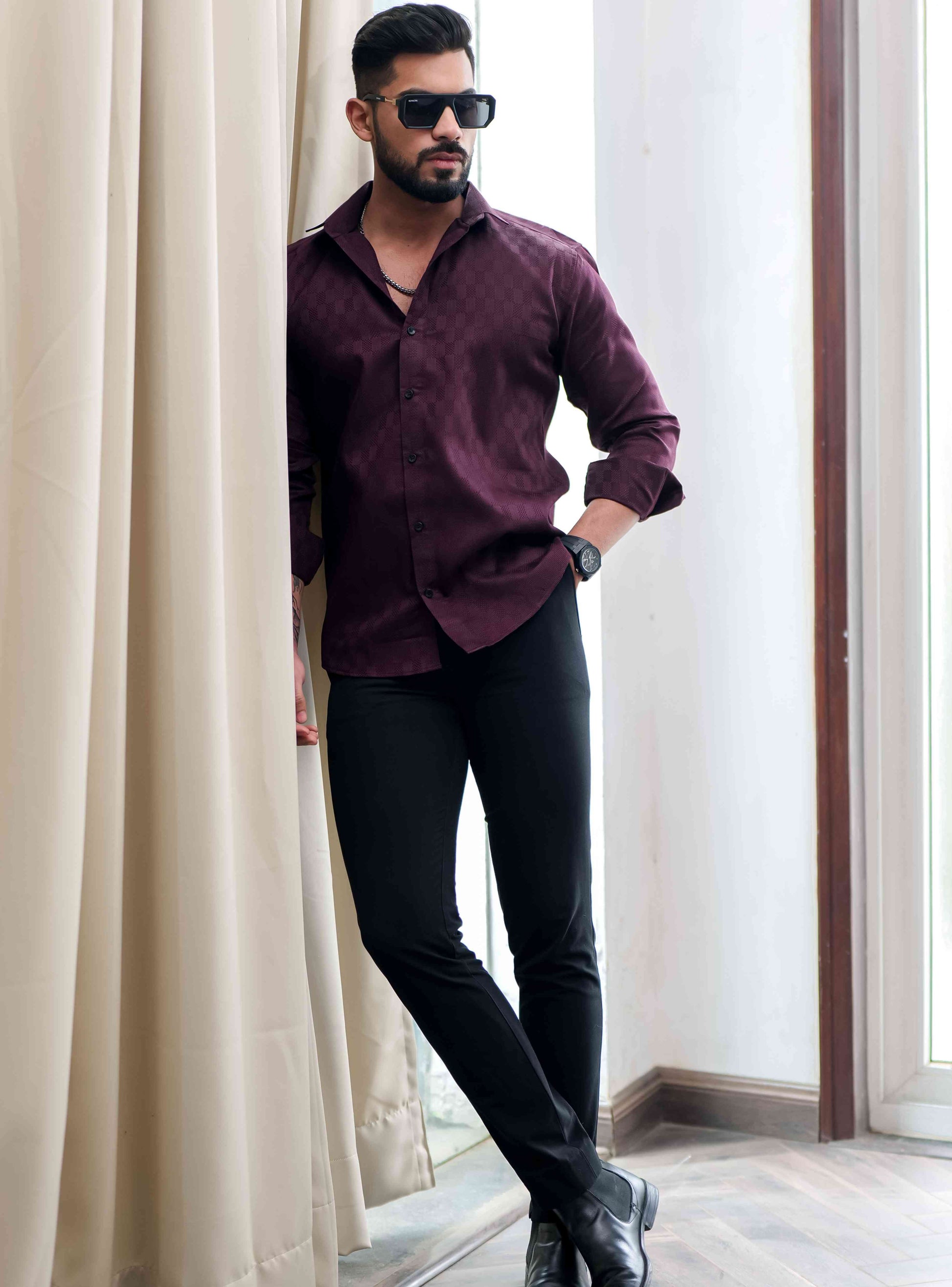 Maroon Texture Premium Cotton Shirt